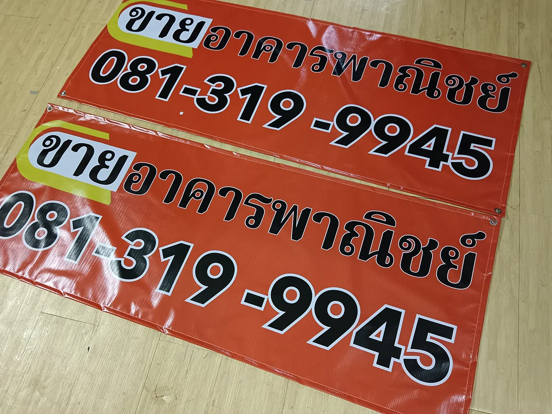 ป้ายไวนิลแบบเจาะตาไก่ยังเป็นสื่อที่ต้นทุนไม่สูง ติดตั้งง่าย ทนทาน และเพิ่มความน่าเชื่อถือให้กับทรัพย์สินได้ทันที เช่นเดียวกับป้ายขายบ้านทั่วไป ป้ายขายอาคารพาณิชย์ที่ออกแบบดีจะทำให้ผู้พบเห็นเข้าใจข้อมูลสำคัญภายใน 3 วินาที และกระตุ้นให้โทรสอบถามได้ทันที