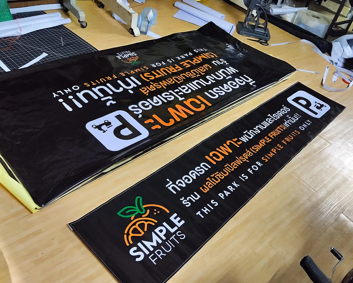 รวมถึงป้ายไวนิลที่จอดรถเฉพาะลูกค้า ป้ายเตือน ป้ายร้าน และงานพิมพ์กลางแจ้งทุกประเภท